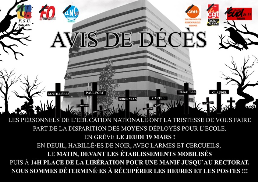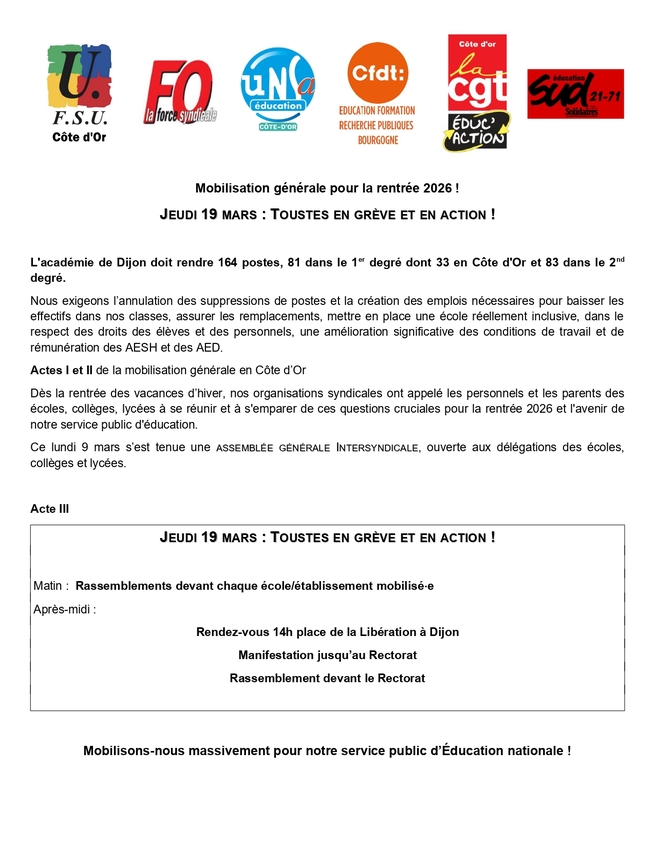 L’académie de Dijon doit rendre 164 postes, 81 dans le 1er degré dont 33 en Côte d’Or et 83 dans le 2d degré, c’est inacceptable !