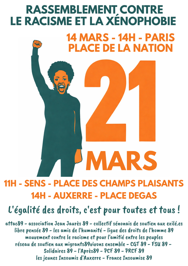 Rendez-vous le 21 mars contre le racisme et la xénophobie, pour l’égalité des droits pour toutes et tous