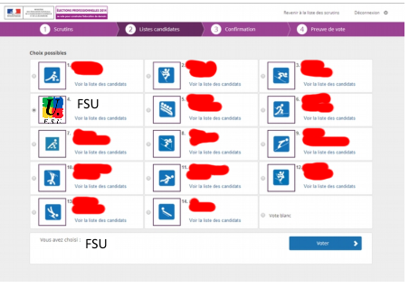 5/ Suivant le scrutin et votre corps, sélectionnez la liste présentée par le SNES ou la FSU et cliquez sur « Voter »